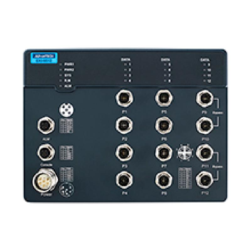 - 8 x M12 D-Coded 10/100 Mbps ports + 4 x M12 X-Coded 10/100/1000 Mbps Byapss ports